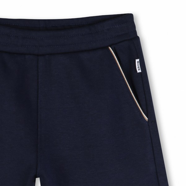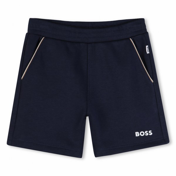 This BOSS Kidswear set is a stylish two-piece outfit designed for babies and toddlers. Crafted primarily from soft cotton, it features a short-sleeved logo t-shirt paired with matching shorts. Available in a variety of styles, including classic white and navy stripes as well as solid navy, the set is designed with an elasticated waistband and practical snap closures for easy dressing and comfort.