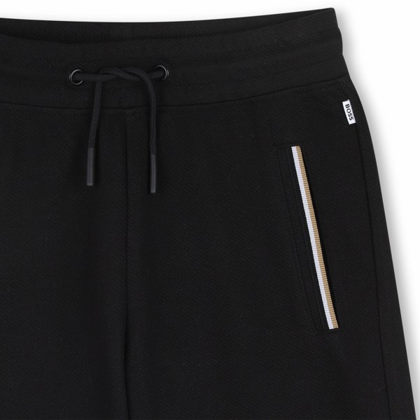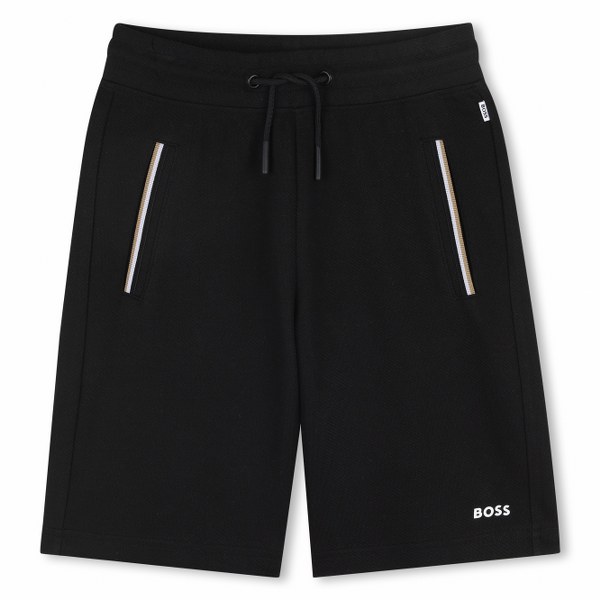 Awaken your inner little adventurer with these BOSS Bermuda shorts. Made with a blend of cotton, polyester and elastane, it offers incomparable freedom of movement. Pockets with iconic stripes and the BOSS logo on the leg add a trendy touch. With its elasticated waistband, it fits perfectly for a look that is both casual and stylish. Perfect for sunny days or family getaways!
