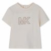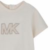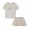 Amaze your child with this irresistible set by MICHAEL KORS. The T-shirt contains cotton from organic farming, guarantees softness and comfort throughout the day. Its all-over print and refined embroidery add a unique touch. Complete the look with a skirt made of double jersey, an innovative blend of recycled and stylish materials. Give your little one ethical and stylish fashion, perfect for everyday adventures. This model is Green Around..